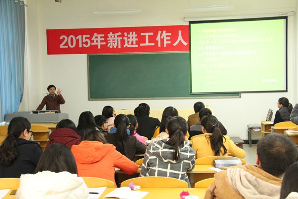 武有祯院长借用党中央最近召开的十八届五中全会上提出的“五个发展”理念,即“创新发展、协调发展、绿色发展、开放发展、共享发展”,对于各位新进教师的教学及科研工作提出了五个方面的要求:一、创新发展。教研工作由高至低分为原创、集成、借鉴三个层次的创新,教师应严格要求自我,努力原创,善于集成,积极借鉴,认真完成各项教研任务。二、协调发展。教师应当处理协调好教学与科研、学科与学科、教研工作与社会实践之间的关系,并且还应兼顾好事业与个人家庭之间的关系。三、绿色发展。在学术作风方面,教师应当坚守原则,不越底线,并努力在工作中提升职业幸福感,始终保持工作活力。四、开放发展。在工作中同事之间、教研中学科之间甚至是不同学校之间都应当保持一种开放自由的态度,以包容并进各取所长谋求发展。五、共享发展。在科研工作中,教师之间应当具有“加盟”意识,积极寻求科研团队中智慧的碰撞,不计个人得失,乐于奉献付出。之后,武院长对于部分教师提出的问题作了解答。