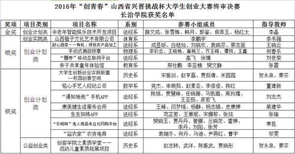 2016年“创青春”山西省兴晋挑战杯大学生创业大赛由共青团山西省委、山西省教育厅、山西省科协、山西省学联主办。学院领导高度重视此项赛事,并由院团委、科研处牵头,组织举办了新葡的京集团8814“2016年‘创青春’兴晋挑战杯大学生创业大赛”校园选拔赛,从各系报送作品中评选出43件作品参加比赛。经过省赛初赛评审,有15件作品脱颖而出,杀入最终决赛。