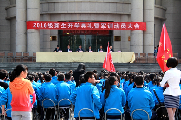 9月19日上午,我院在南北校区分别举行2016级新生开学典礼暨军训动员大会。在家的党政领导、各教学系部党政负责人和教师、新生班辅导员和班主任以及相关职能部门负责人、有关干部职工出席开学典礼暨军训动员大会。