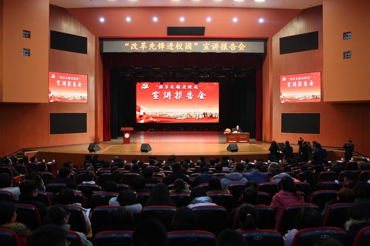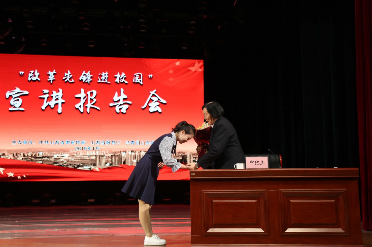为深入学习宣传贯彻习近平总书记在庆祝改革开放40周年大会上的重要讲话精神,更好发挥先锋榜样的示范引领作用,由中宣部、教育部、团中央主办,中共山西省委宣传部、山西省教育厅、共青团山西省委共同承办的“改革先锋进校园”宣讲报告会于1月8日在我院举行。