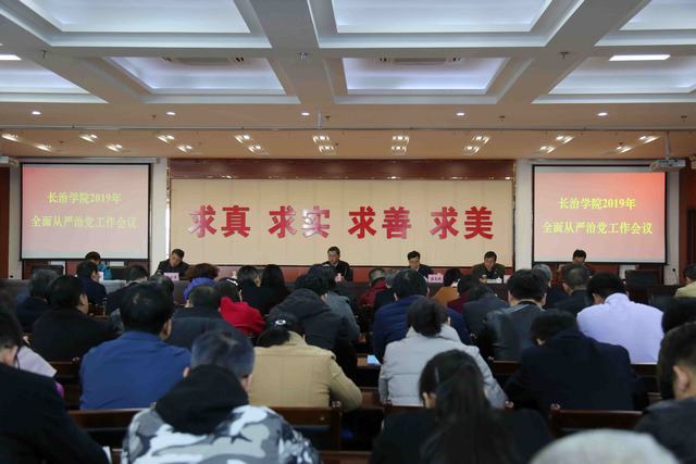二是全面认真扎实完成2019年全面从严治党工作任务。2019年是全面建成小康社会、实现第一个百年奋斗目标的关键之年,是我省在“两转”基础上全面拓展党的建设和党的事业发展新局面的开局之年,是我院以巡视整改和“改革创新、奋发有为”大讨论为契机,推动全面从严治党的重要一年。要坚持以习近平新时代中国特色社会主义思想为指导,全面加强党的领导和党的建设,全面从严管党治党,一体推进不敢腐、不能腐、不想腐,强化监督执纪问责,取得党风廉政建设更大成果,巩固发展反腐败斗争压倒性胜利,确保上级决策部署及时准确有效落实,以持续有力推进全面从严治党优异成绩,庆祝中华人民共和国成立70周年。要以党的政治建设为统领,坚持加强党的全面领导。强化思想引领和理论武装,把习近平新时代中国特色社会主义思想作为推进全面从严治党的根本遵循,结合“改革创新、奋发有为”大讨论,做好各领域意识形态工作,加强党的全面领导,统领和推动办学治校育人各方面工作提升质量水平。要力戒形式主义官僚主义,坚决纠正“四风”改进作风。深入推进形式主义、官僚主义整治,深入推进教育领域腐败和不正之风专项整治,全力狠抓执行落实。用好“四种形态”,巩固发展反腐败斗争压倒性胜利。坚持把纪律规矩挺在前面,日常监督从严从紧,认真做好巡视“后半篇文章”,抓好校内巡察工作,坚持从严执纪常态化,贯通运用“四种形态”,坚决铲除腐败土壤。要大力加强党建工作,推动全面从严治党向纵深推进。今年是我省教育系统“支部建设年”,是我院“党建质量提升年”。要认真学习贯彻落实《中国共产党支部工作条例(试行)》,狠抓基层党组织建设,构建完善组织体系,全面提升党建工作质量。