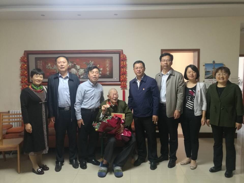 在庆祝驻华人民共和国成立70周年之际,9月28日,党委书记韩泽春,党委副书记、校长茹文明,党委副书记赵水琛,党委委员、副校长史晓东,党委委员、组织部长宋志燕,党委委员、统战部部长秦晋荣和离退休处工作人员走访慰问了我院参加过解放战争、火线入党的老党员苗新喜同志,参加过抗美援朝战役的老干部邹京同志和省级优秀工作者、退休干部皇甫志芳同志。