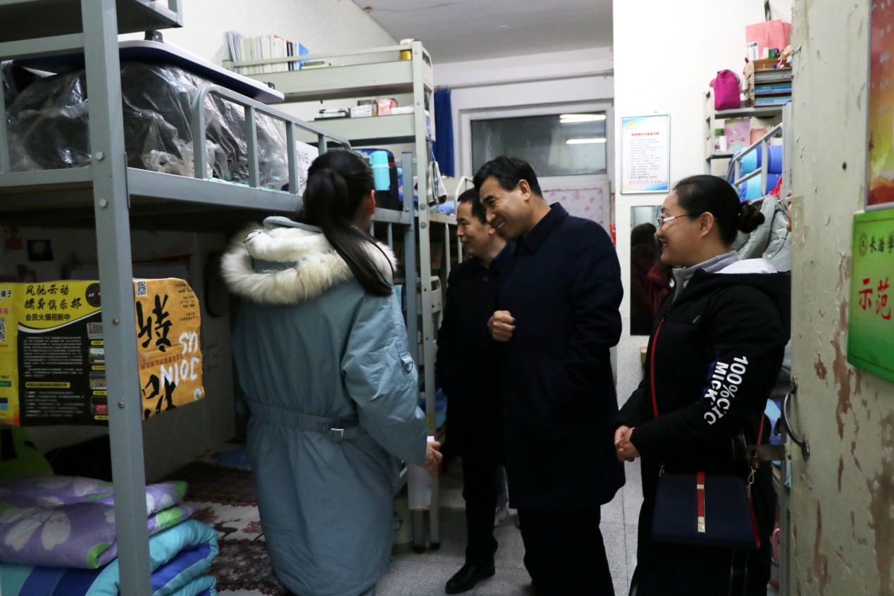 郝勇东一行实地调研了食堂、教室、学生宿舍,并与学生亲切交流,了解他们在校学生生活情况,并鼓励大家扎实学习,努力成为高素质的社会主义建设者和接班人。