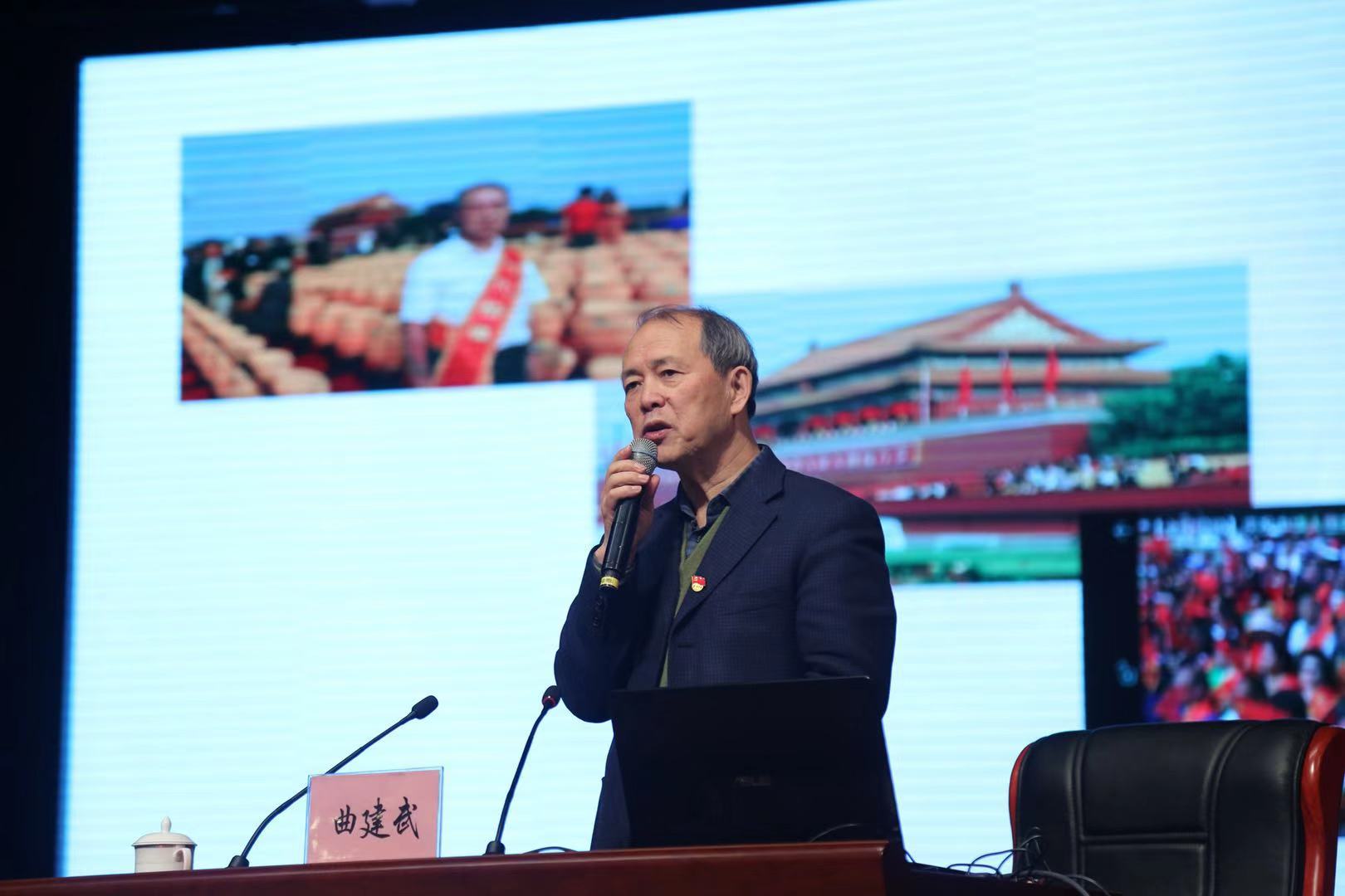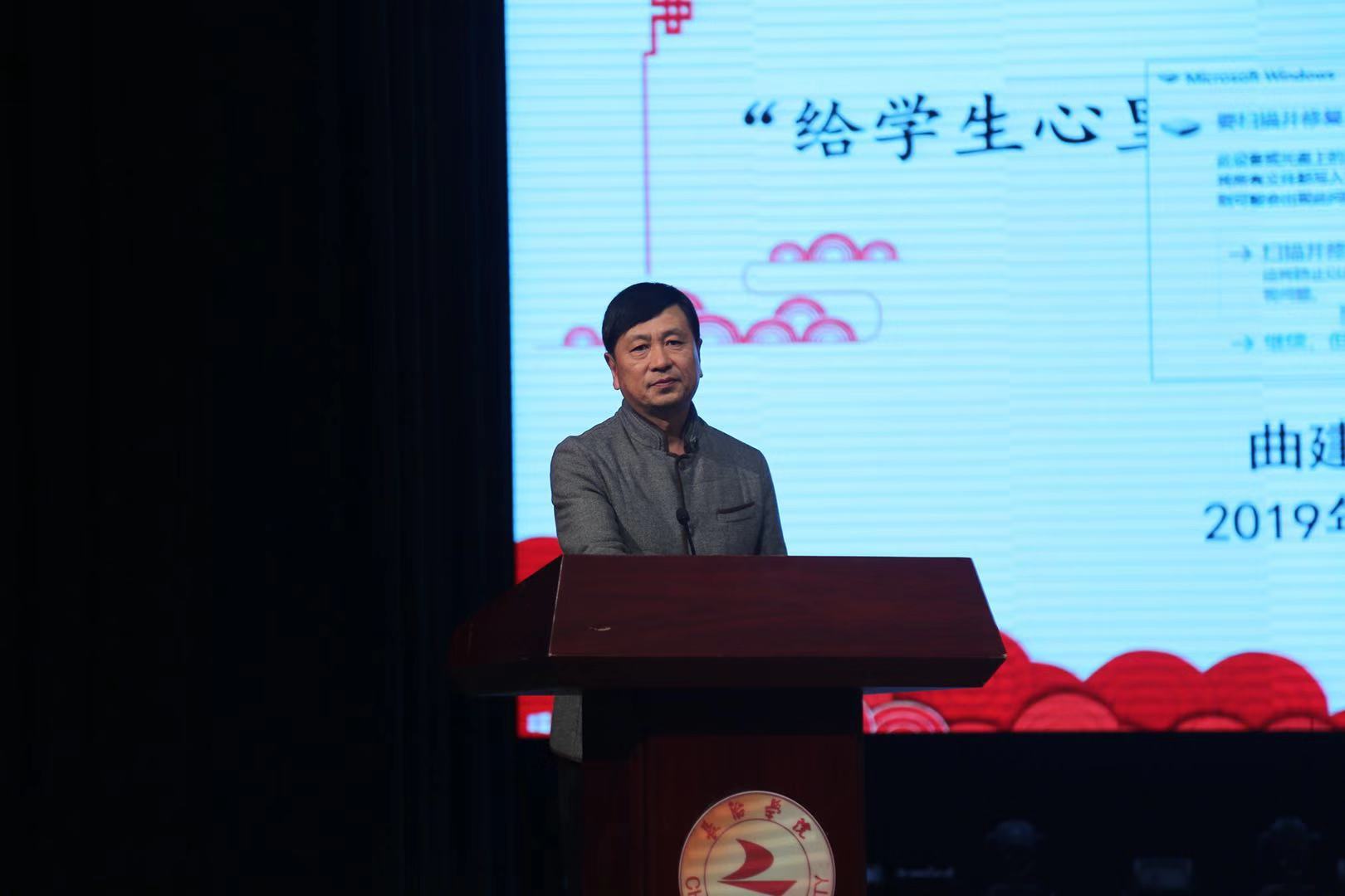 曲建武以“学校无闲人,人人都育人;学校无闲事,事事都育人;学校无闲时,时时都育人;学校无闲处,处处都育人”为切入点展开叙述,他结合三十多年潜心育人的亲身经历,从“我为什么愿意做辅导员”“践行‘六要’、铸魂育人”两方面讲述了自己在辅导员工作中一个个情真意切、感人至深的生动案例。他从政治要强、情怀要深、思维要新、视野要广、自律要严、人格要正六个方面,通过与学生相处的点滴记录,深刻诠释了作为一名教育工作者的赤子之心和大爱情怀,全面阐述了作为高校思想政治教育工作者应有的责任担当和使命意识,深刻阐述了加强大学生思想政治教育工作的神圣使命和重要意义,勉励辅导员们要热爱本职工作,立足平凡岗位,不忘初心使命,把爱贯穿于教育的全过程,润物无声地做好新时代大学生思想政治教育工作,引导学生坚定理想信念,厚植爱国情怀,用习近平新时代中国特色社会主义思想引领学生成长成才。