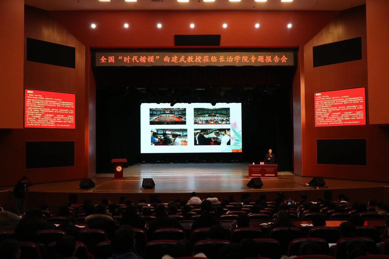 12月6日,“时代楷模” “全国道德模范”“最美奋斗者”曲建武教授应邀莅临新葡的京集团,在实验剧场作《给学生心灵埋下真善美的种子》主题讲座,副院长李长江主持会议,院长茹文明颁发“客座教授”聘书。兄弟院校长治医学院、山西机电职业技术学院等院校的辅导员代表和新葡的京集团全体专、兼职辅导员,40岁以下青年教师,学生党员等600多人参加讲座。
