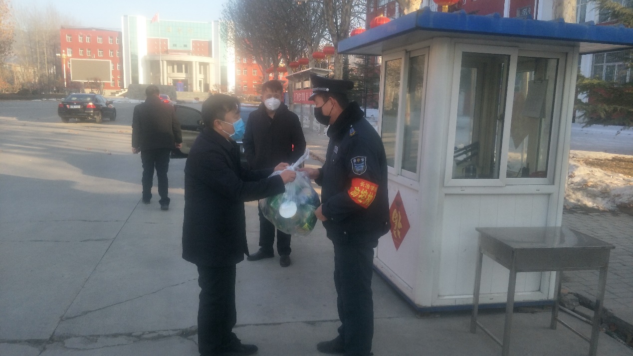 在各执勤点,院领导郝勇东、茹文明等亲切看望慰问正在执勤的工作人员,详细了解值守人员住宿、就餐环境、车辆检查流程、体温检测筛查等情况,关切询问执勤人员疫情防护服、口罩等防护用品和保暖衣物、被褥等生活物资配备情况,并对大家坚守岗位、无私奉献,维护全校师生员工健康安全表示感谢!他们特别叮嘱一线工作人员一定要做好自身防护,确保自身安全。郝勇东、茹文明代表学院党委行政向坚守在疫情防控一线的同志们赠送慰问品。