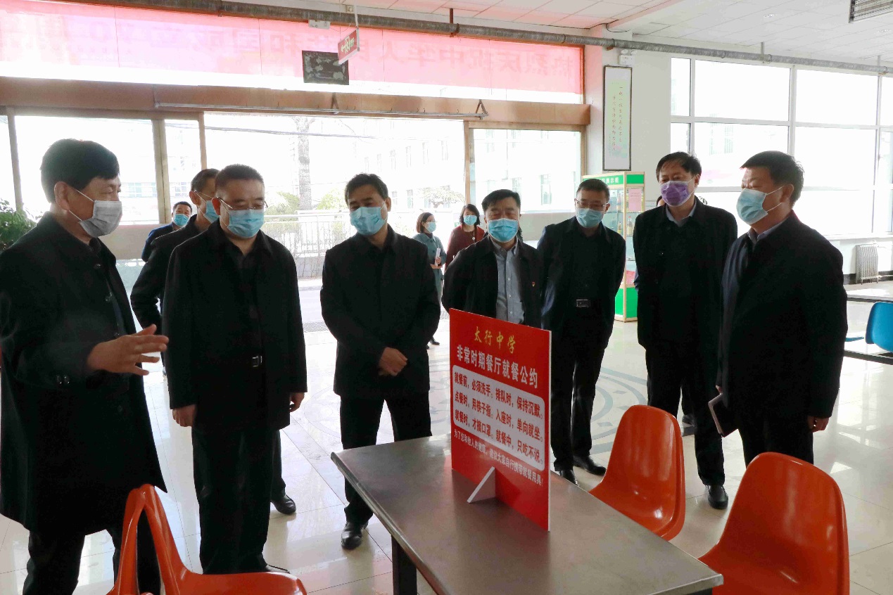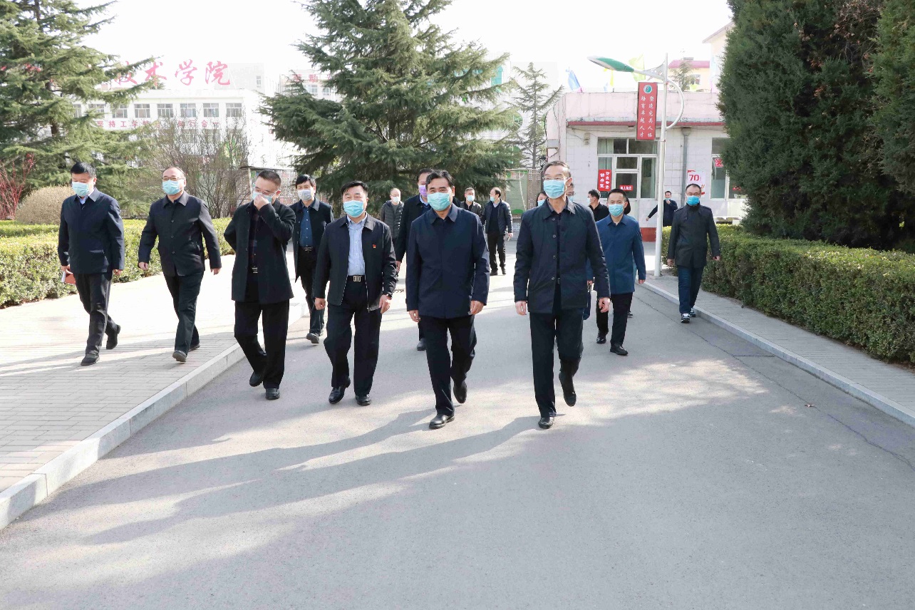 3月20日下午,党委书记郝勇东,党委副书记、院长茹文明来到附属太行中学检查指导疫情防控和开学准备工作。党委副书记赵水琛,副院长李长江参加调研。党办、院办、组织部、宣传部及附中党委书记、校长等陪同。