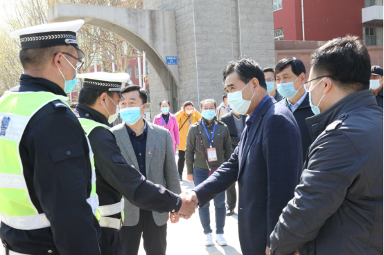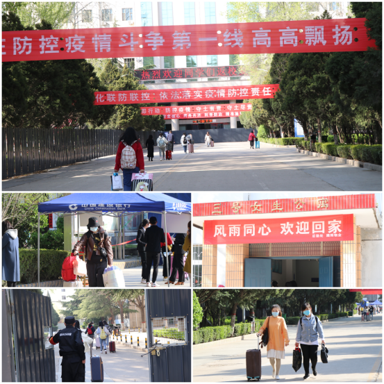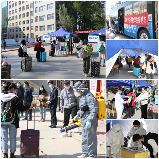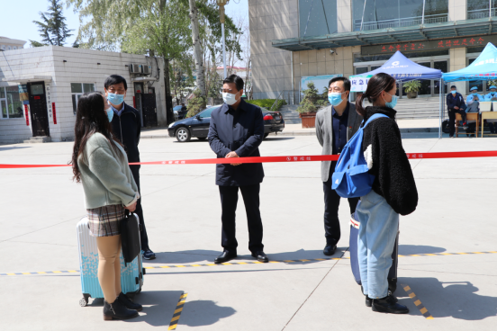 根据省委和省教育厅关于全省高校毕业年级开学返校的决策部署和省疫情防控领导小组《关于进一步做好2020年春季学期全省高校毕业年级开学准备工作的通知》等文件精神,按照省委省政府和教育厅要求,4月12日,新葡的京集团迎来了首批返校毕业生。党委书记郝勇东,党委副书记、院长茹文明和其他校领导班子成员亲自在校门口迎接毕业生返校。