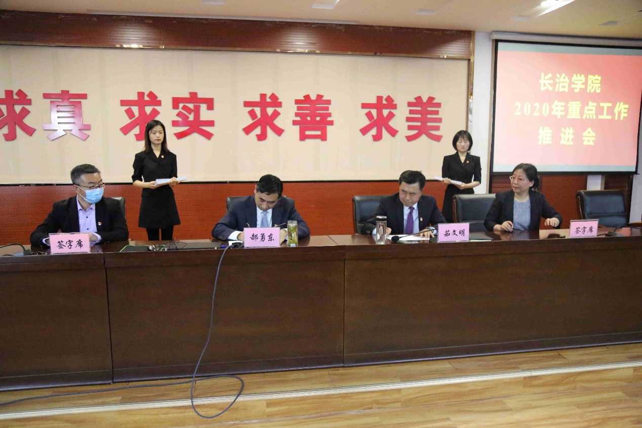 会上,郝勇东、茹文明分别与各党总支(分党委)书记,各系部主任,各职能部门负责人签订2020年工作目标责任书。