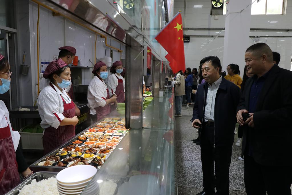 “今年因为疫情影响,课程安排时间紧张,学校决定缩短放假时间,同学们不能和家人一块儿过节。大家在学校吃得习不习惯?生活上还有什么困难没有?”在北校学生餐厅,茹文明院长每到一处就仔细询问同学们在校期间的学习生活情况,餐厅饭菜的质量,餐厅的卫生和食品安全问题。他向正在用餐的同学们送上节日的祝福。“每逢佳节倍思亲”。他嘱咐身边的工作人员,要牢固树立“以人为本”“以生为本”的理念,学生的事无小事。同学们远离父母和家人,一定要为他们创设优雅舒适安全和谐的校园氛围,保证他们度过一个温暖、祥和、快乐的中秋佳节。