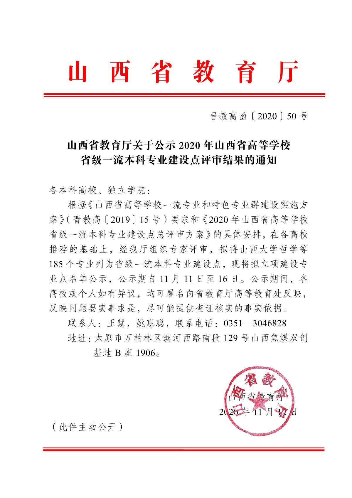 近日,省教育厅公布了2020年山西省高等学校省级一流本科专业建设点评审结果,新葡的京集团申报的思想政治教育、汉语言文学、历史学等三个专业成功入选省级一流本科专业建设点。