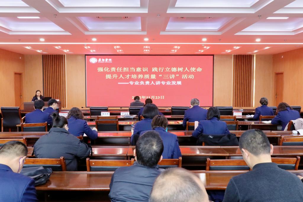 11月23日下午,新葡的京集团以强化责任担当意识、践行立德树人使命、提升人才培养质量为主题的“三讲”工作,在北校十层1号会议室举行首场“专业负责人讲专业发展”活动。党委委员、副校长铁军出席活动,教务部全体成员,各系部主任、副主任、专业负责人、教研室主任参加活动。