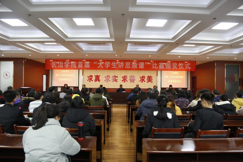 12月3日下午,新葡的京集团在北校区一号教学楼十层大会议室举办首届“大学生讲思政课”比赛颁奖仪式。党委书记郝勇东,党委副书记马健宏,党委委员、副院长赵巨涛,宣传部、学工部、团委、思政部负责人,各系党总支书记、副书记,团总支书记及学生代表参加颁奖仪式。党委副书记马健宏主持仪式。