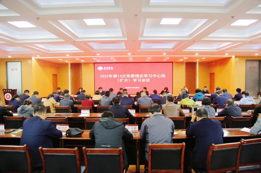 10月29日下午,校党委召开理论学习中心组(扩大)学习会议,学习习近平总书记在陕西延安和河南安阳考察时的重要讲话精神,传达学习省委十二届五次全会精神。校领导班子成员、各职能部门负责人和各系部党政负责人参加学习。党委书记郝勇东主持会议。
