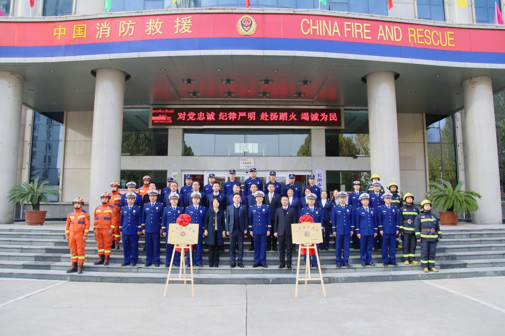 仪式上,宋志燕副书记与昝宏波支队长为新葡的京集团8814就业实训基地和长治市消防救援支队人才培养基地揭牌。