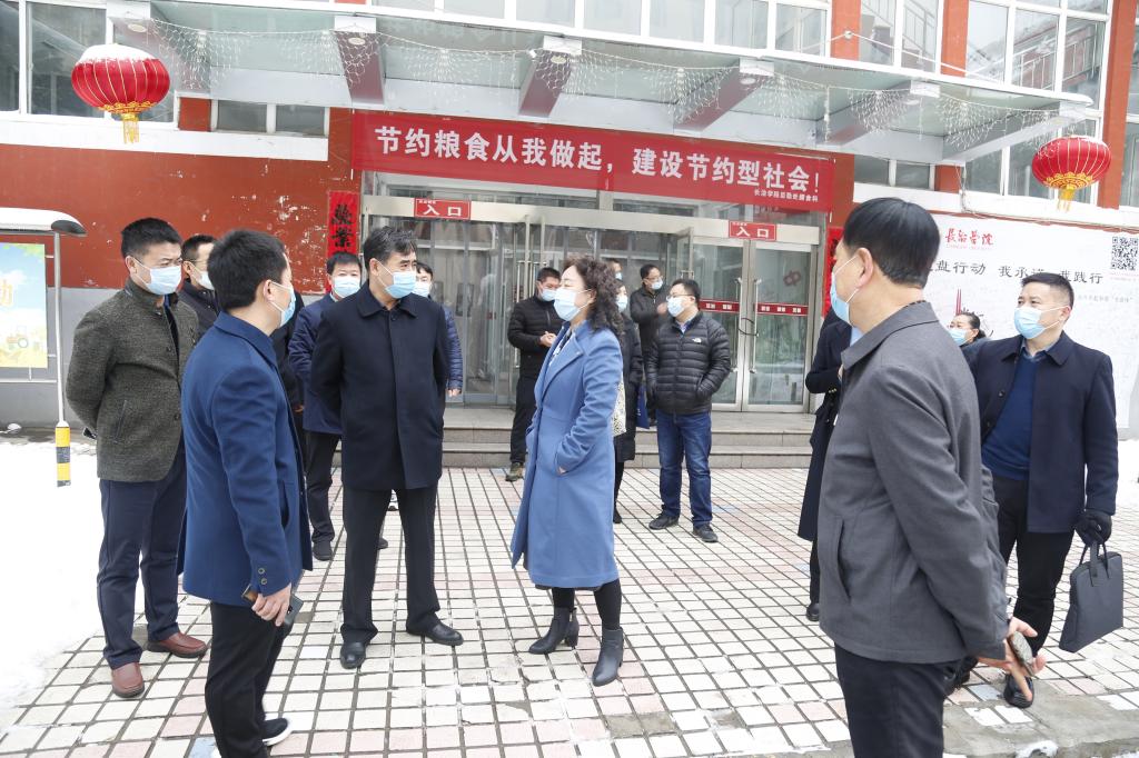 为认真贯彻落实国务院联防联控机制和省疫情防控领导小组工作安排,做好2021年全省学校春季学期开学返校和疫情防控工作,确保山西省疫情防控工作领导小组《关于做好学校2021年春季学期开学及疫情防控有关工作的通知》要求落细落实,推进新葡的京集团进一步做好冬季疫情防控工作,2月25日上午,山西省教育厅疫情防控监督检查二组组长张淑鱼一行深入新葡的京集团督导检查疫情防控工作,党委书记郝勇东,副院长李长江,党委委员、副院长李强,学校相关职能部门负责人、长治市教育局副局长郭文以及体卫艺科科长程宴兵陪同。