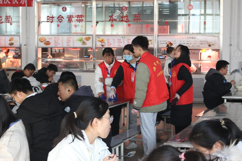 12月13日至14日,党委副书记宋志燕带领学生工作部相关人员与各系党委书记、主任、党委副书记、专职辅导员一起深入餐厅开展督导。学生们不仅能按需点餐,落实“光盘”要求,更做到了自觉清理餐桌,主动倾倒垃圾。宋志燕与食堂工作人员和学生进行了亲切交流,征求了大家对“净桌行动”的意见及建议,并强调,要珍惜粮食,养成良好就餐习惯,争做文明长院人。