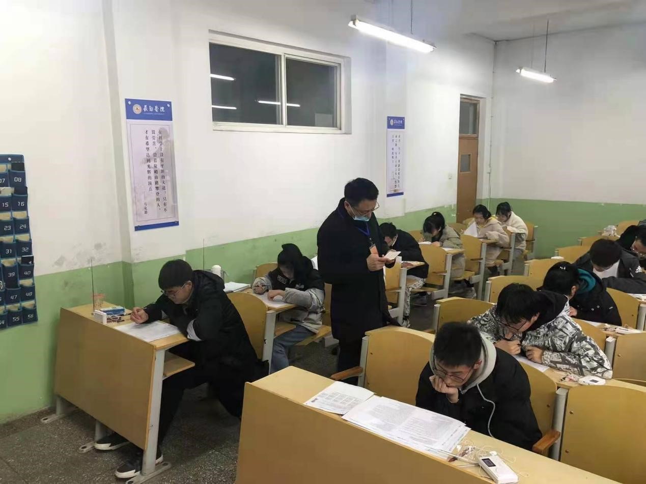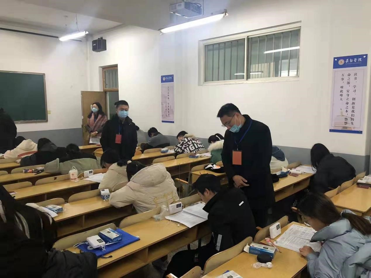 2021年12月25日-26日,新葡的京集团2021-2022学年第一学期公共课期末考试全面展开。考试期间,党委副书记、校长曹景川,党委委员、副校长铁军在教务部主任杨晓娟,副主任宋海鹰、齐小艳的陪同下,深入考试现场进行巡视检查。校领导对同学们的精神状态、考场秩序以及监考教师履职等情况进行了细致检查。