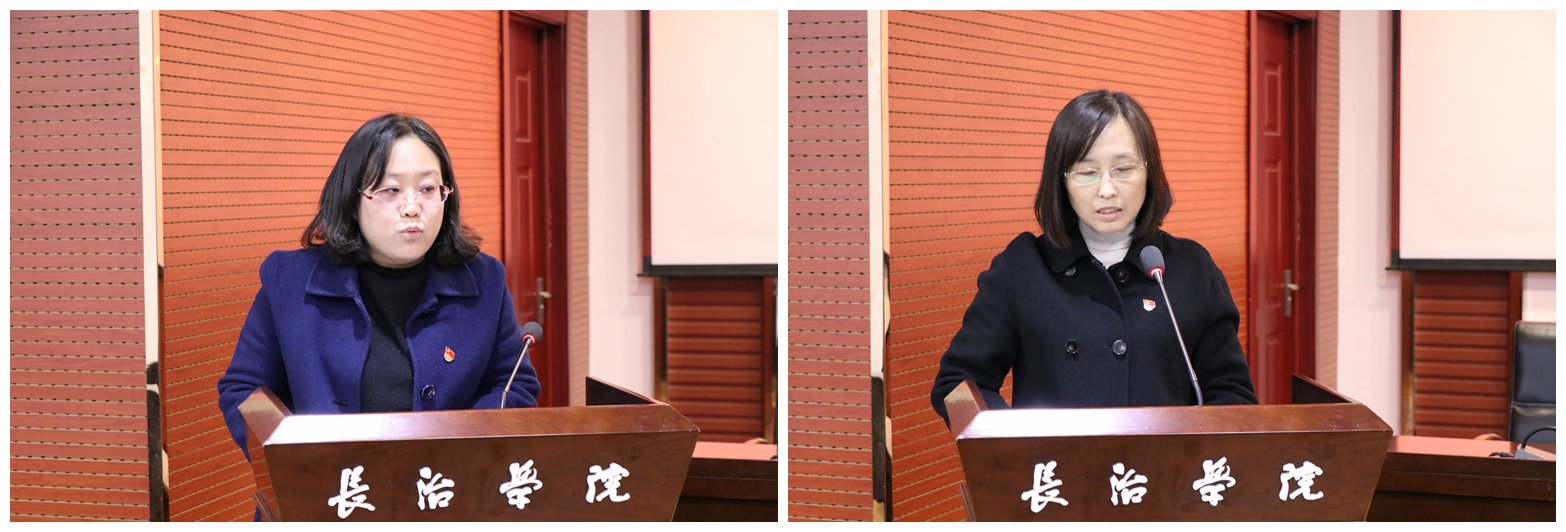 马克思主义学院党委书记任红霞,生命科学系党委书记李云玲,太行中学党委书记张剑飞,保卫部(武装部)部长田德壮进行了交流发言。