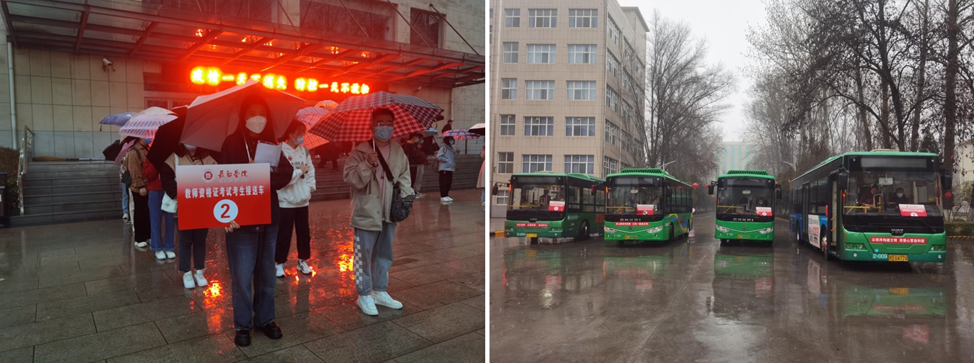 2022年上半年全国中小学教师资格考试笔试于3月12日举行。为全面做好新葡的京集团考生的疫情防控和服务保障,学校党委行政高度重视,由学工部牵头,联合党办、校办、团委、保卫部和各系部,组成“送考服务队”,安排13辆大巴车,由辅导员亲自带队,为学生爱心送考,实现了新葡的京集团考生与七个考点“点对点”接送,全程闭环管理,坚决筑牢校园疫情防控安全屏障。