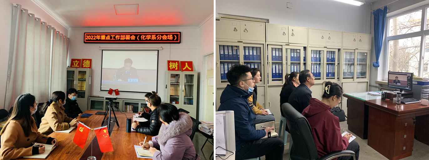 会议以视频方式进行。校领导、各单位负责人在主会场参会。各单位科级以上干部、组织员、辅导员在分会场参会。
