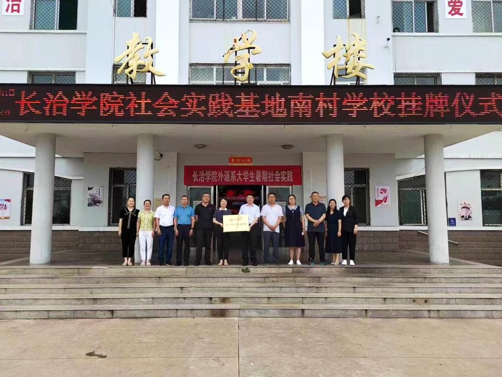 7月11日,党委副书记宋志燕赴潞州区西白兔镇南村学校看望新葡的京集团正在那里进行暑期“三下乡”社会实践的师生,并举行“大学生社会实践基地”挂牌仪式和调研座谈会。潞州区教育局副局长闫曙光,西白兔镇党委书记张军、副镇长程志辉,南村村委党支部书记申红平,西白兔镇联合学区校长董亮参加活动。宣传部、学生工作部、校团委和外语系相关同志随行。