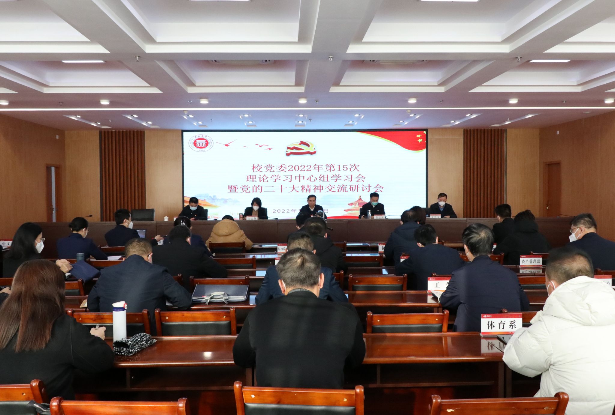 12月30日下午,校党委举行2022年第15次理论学习中心组(扩大)学习会,集中学习传达中央和省委经济工作会议精神。校领导、各职能部门负责人和各系党政负责人参加学习,会议以线上线下相结合的方式进行。党委书记郝勇东主持会议。