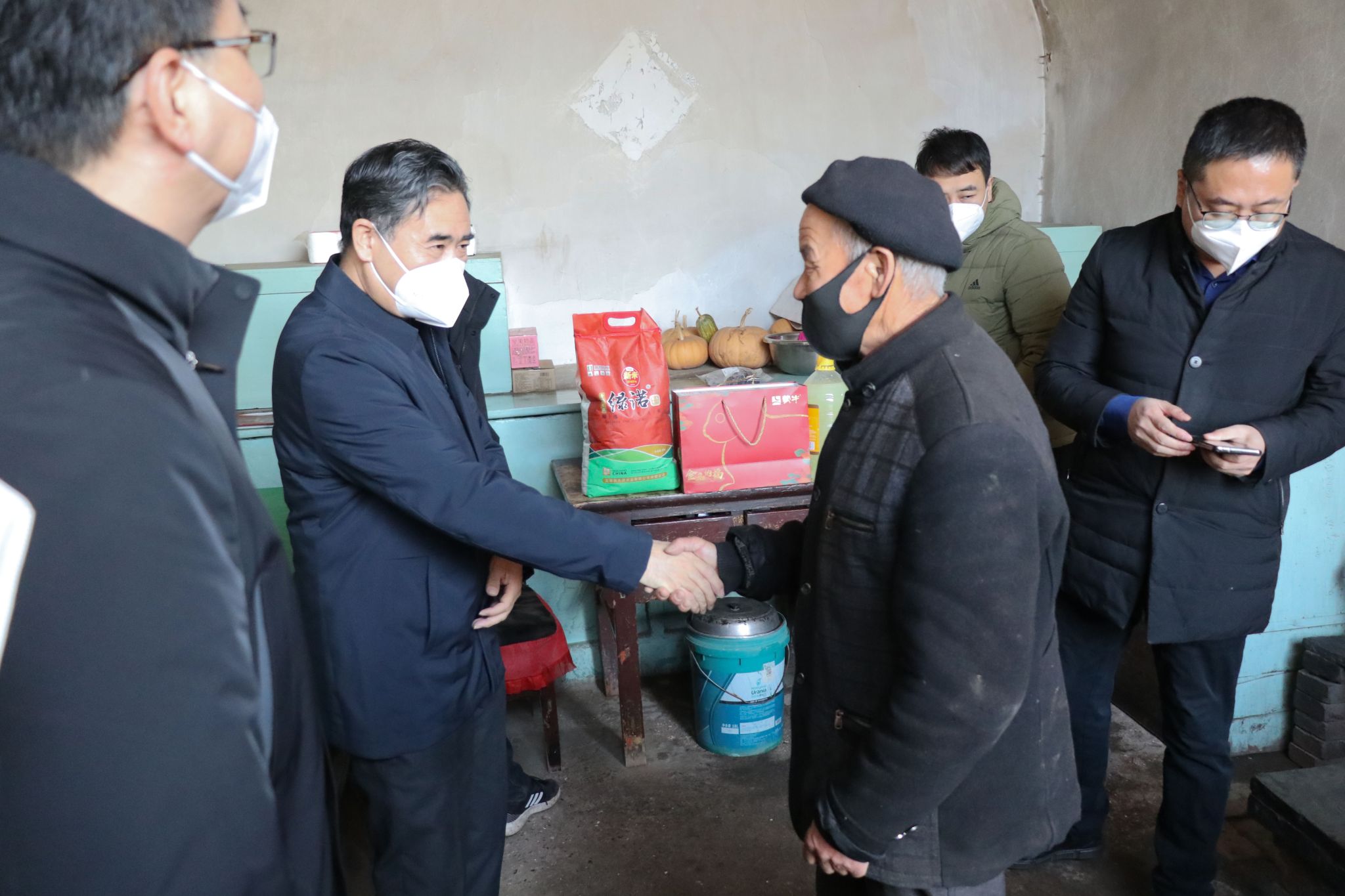 2023年春节将至,为进一步助力乡村振兴,发挥帮扶力量,确保帮扶村困难群众度过一个欢乐祥和、健康安全的幸福年,1月9日上午,新葡的京集团8814党委书记郝勇东、副书记史晓东一行深入学校定点帮扶村开展慰问走访活动,向武乡县大有乡峪口村、枣烟村的困难群众和驻村工作队员送上春节的问候和祝福。武乡县政府办副主任李斌、乡村振兴局副局长王星以及帮扶村所在乡镇领导陪同慰问走访。