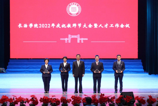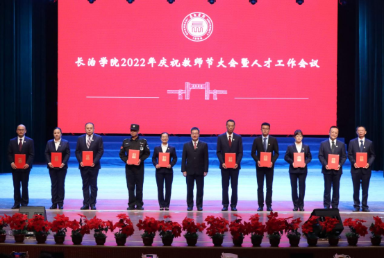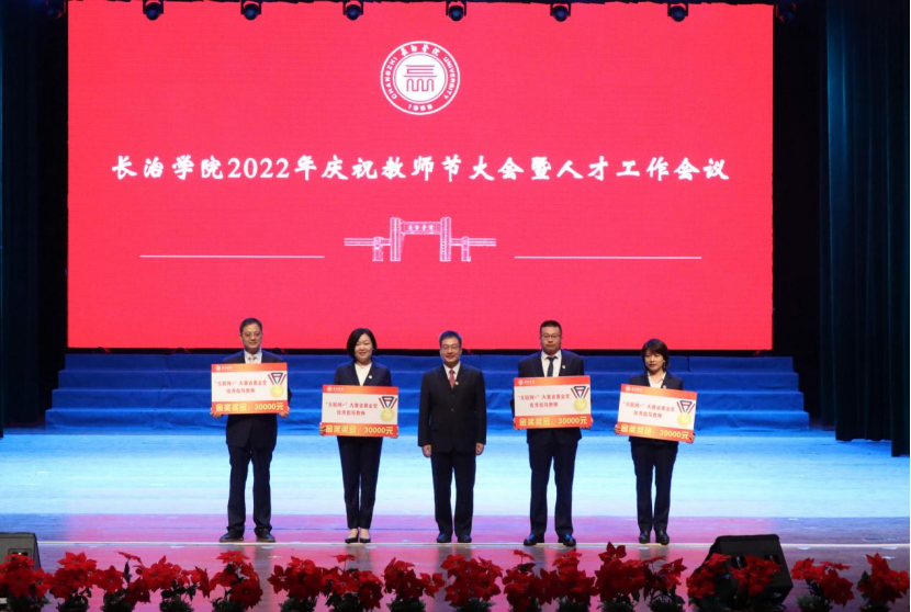 在欢快的乐曲和热烈的掌声中,校领导为师德标兵、师德先进个人、模范教师、优秀教师、“十佳”魅力教师、“课程思政”教学名师、优秀教育工作者、“互联网+”大学生创新创业大赛优秀指导教师以及入选学校首批“太行学者”支持计划的教师和培育团队颁发了荣誉证书,为从教三十年教师颁发了纪念牌。新教师进行了入职宣誓。