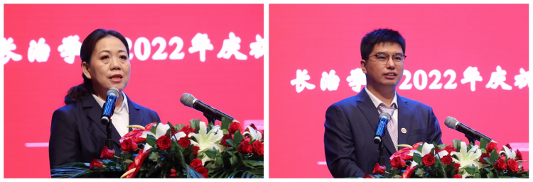 “师德标兵”、教育系副主任李潇,“太行学者”攀登人才、数学系教师董炯作为获奖教师代表先后发言,分享了各自在教学科研一线的工作经历,讲述了作为教师的使命担当。