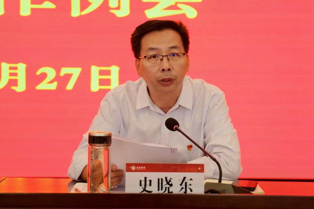 郝勇东指出,党的二十大召开在即,全校上下要进一步提高政治意识和大局意识,立足新时代、面向新征程,牢记为党育人、为国育才的使命责任,做好党的二十大精神的学习宣传贯彻工作。一是组织收听收看党的二十大会议盛况。聚焦主题主线,创新方式方法,开展好学习宣传,营造浓厚氛围。二是加强学生工作体系建设。进一步发挥好学生工作领导组的统筹作用,优化职能部门之间以及职能部门与系部之间的沟通联系机制,强化信息化技术在学生工作中的应用,完善“大学工”格局。三是持续提升治理能力。要进一步加强工作梳理,在充分总结工作的基础上,以制度建设为重点,查漏补缺,加强长效机制建设。四是持续做好“清廉长院”建设。要结合正在开展的“清廉长院”建设,统筹推进审计整改和校内第一轮巡察工作,持续巩固风清气正的良好政治生态和育人环境。五是要持续强化安全稳定工作。要严格落实疫情防控各项要求,严格落实安全稳定和意识形态工作责任制各项要求,加强展板等各类阵地管理,线上线下相结合做好舆情风险研判,严格落实国庆节期间24小时值班带班要求,切实把主体责任扛在肩上、落到实处,以实际行动迎接党的二十大胜利召开。