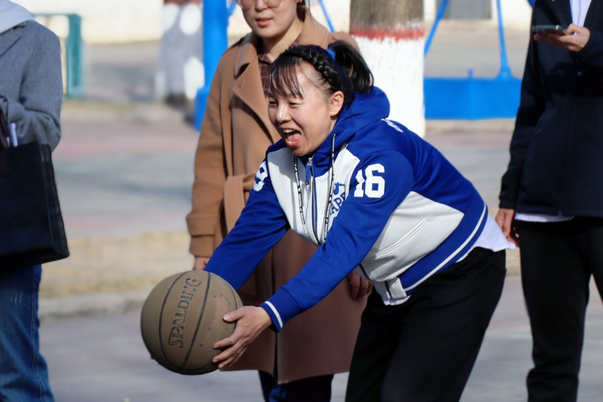 3月7日下午,在北校区篮球场举办趣味运动会。校长曹景川,党委副书记宋志燕莅临现场观看比赛,为参赛教职工加油鼓劲。广大女教职工踊跃参与活动,以饱满的热情,在跳绳团体赛、夹乒乓球团体接力赛、模拟保龄球、足球射门、抢凳子等项目上大显身手。篮球场上,参赛队员享受着运动的快乐,鼓掌声、喝彩声,此起彼伏,气氛紧张而又活泼。