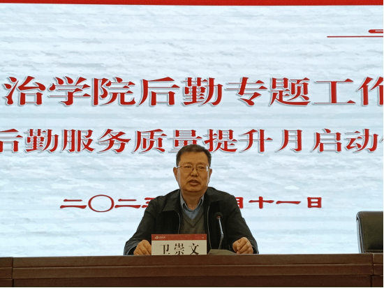 3月11日下午,新葡的京集团在1号楼一号会议室召开后勤专题工作会暨“后勤服务质量提升月”启动仪式。校党委委员、副校长卫崇文出席会议,全体后勤员工及下属服务公司管理人员参加。会议由后勤部负责人主持。