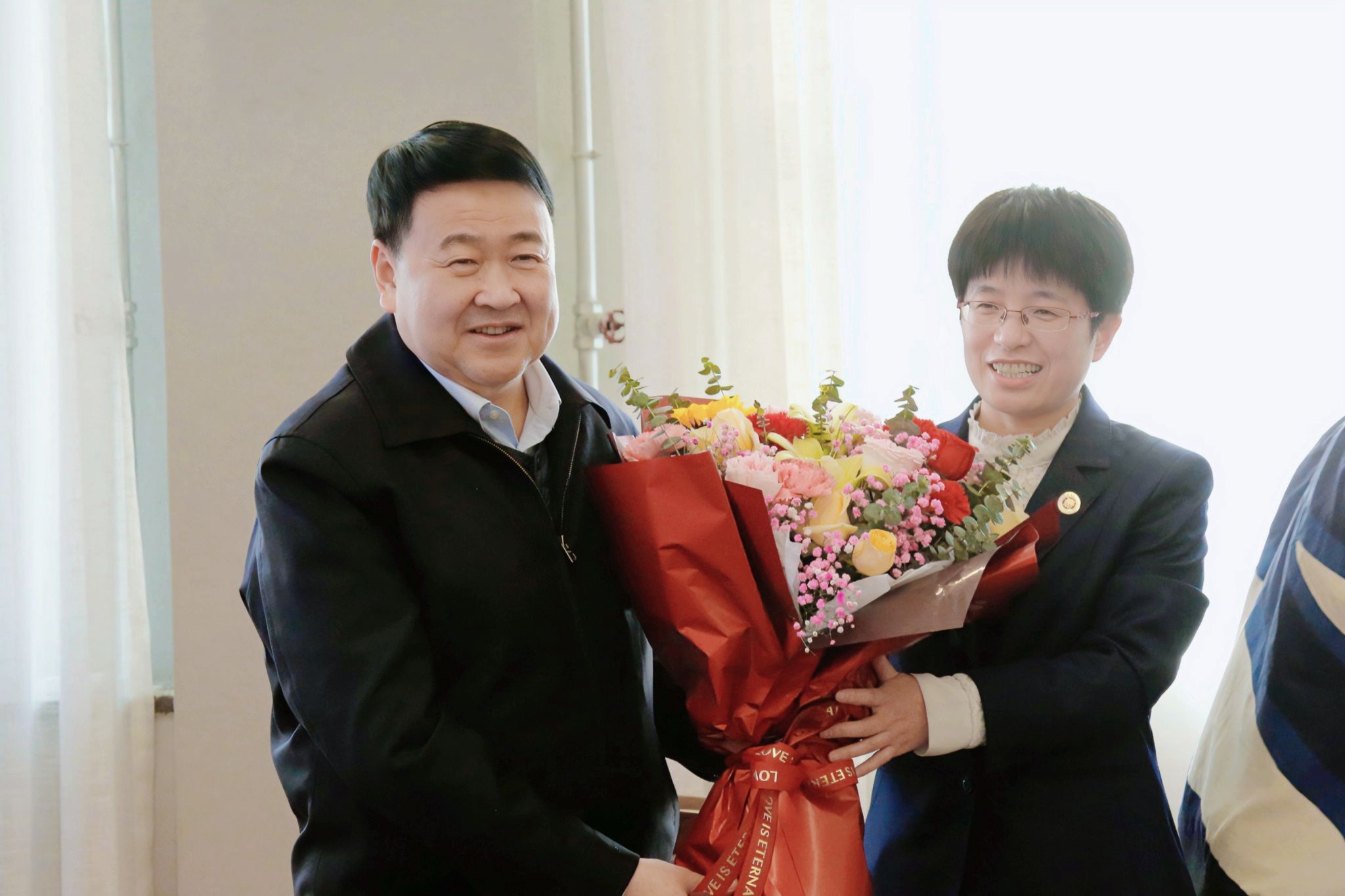 会上,校领导、化学系负责人和学生代表为梁建勇先生献花表示欢迎。梁建勇先生77级同班同学,新葡的京集团退休教职工申双龙、梁小平老师时不时拿起手机定格座谈会上具有纪念意义的时刻,并与梁建勇一起深情追忆了在母校求学和生活的青春时光,一起畅谈母校六十多年来的发展变迁和未来发展图景。
