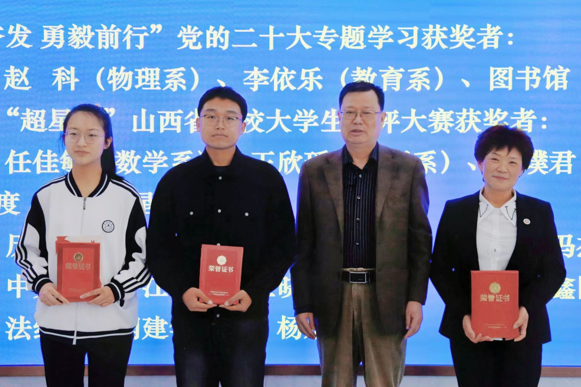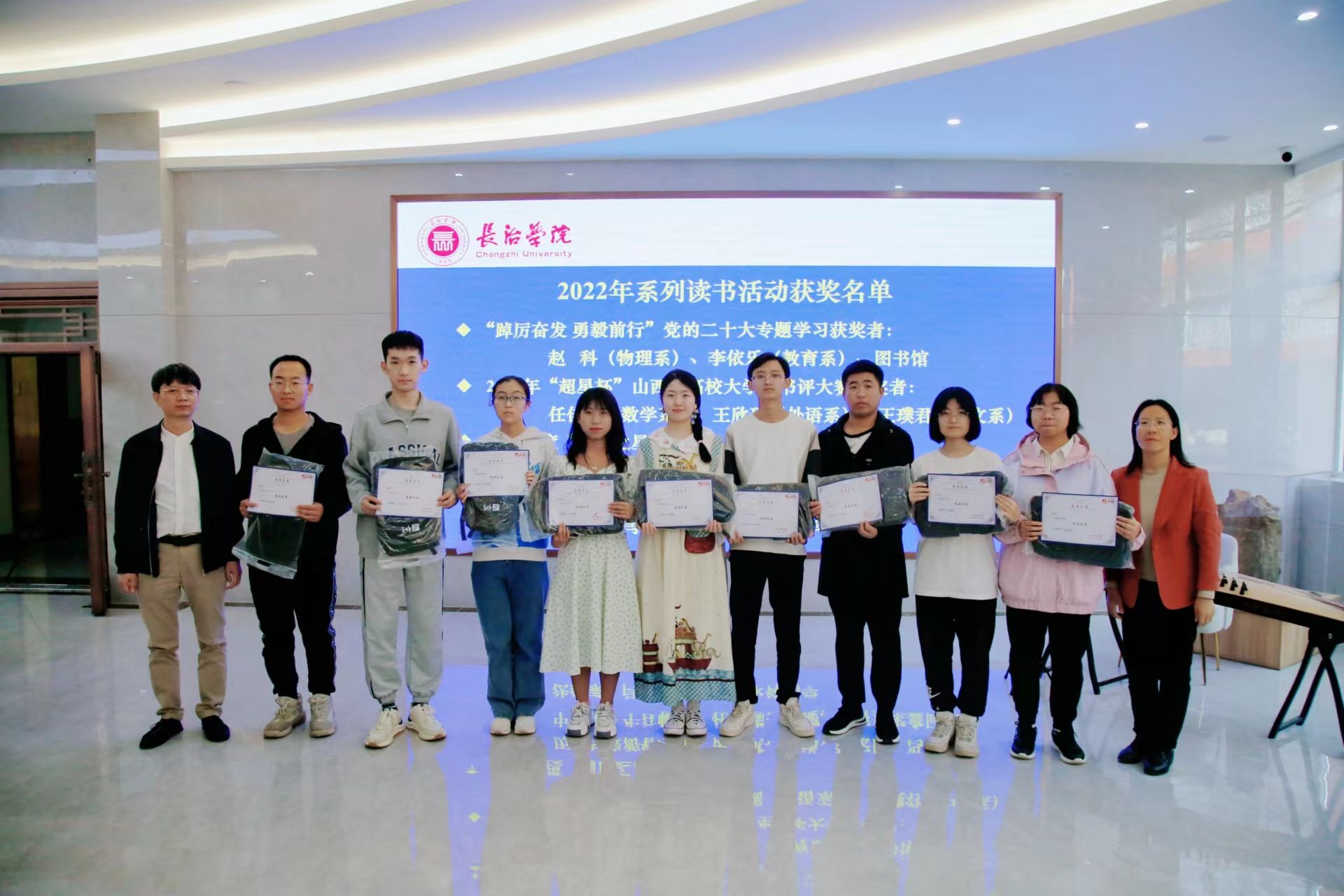 活动现场,为“踔厉奋发 勇毅前行”党的二十大专题学习活动的获奖者进行了颁奖,为2022年“超星杯”山西省高校大学生书评大赛和2022年新葡的京集团借阅排行前10的读者颁发了"阅读之星"奖