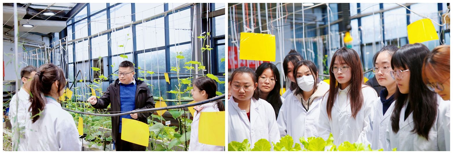 座谈会后,大家一起参观了生命科学系太行山药用植物肥料工程中心实践基地。基地指导教师赵青松正在和学生们一起做实验,他表示,“作为一名高校的科技工作者和在一线指导学生科技活动的教师,学习了习近平总书记的回信,感到非常振奋,在未来的工作中,将进一步扎根上党大地,把教学、科研延伸到田间地头,培养更多有情怀、有本领的青年科技人才,主动服务乡村振兴和农业强国建设。”