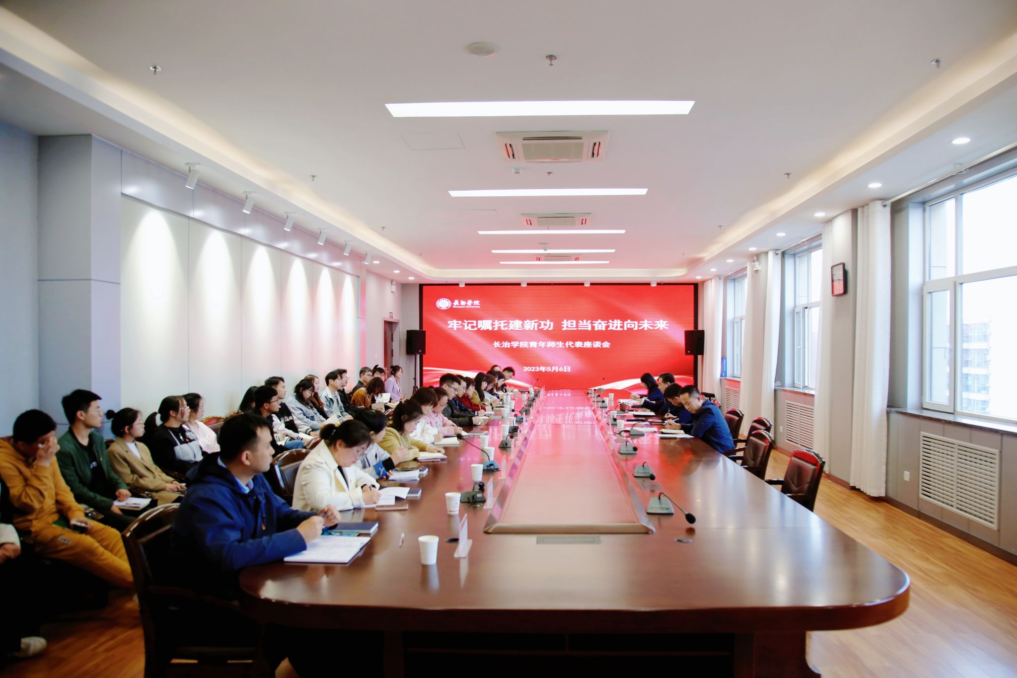 校党委书记郝勇东出席座谈会,与大家一起深入交流学习体会。党委办公室、党委宣传部、学生工作部、校团委负责人和辅导员、团学骨干等青年师生代表参加座谈。学生工作部部长韩峰主持座谈会。
