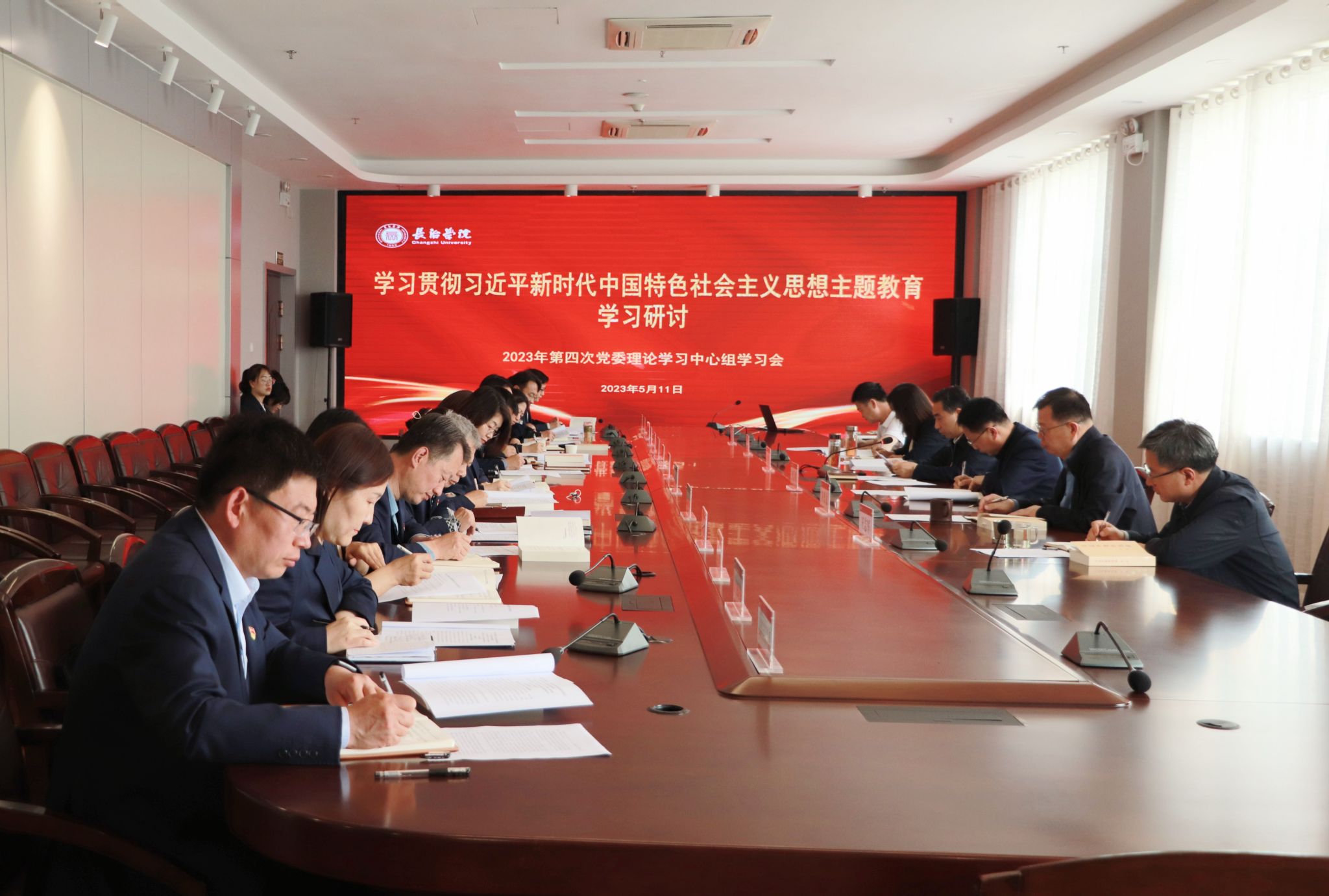 5月11日下午,校党委举行2023年第4次理论学习中心组学习会议暨学习贯彻习近平新时代中国特色社会主义思想主题教育专题学习研讨会。校领导班子成员和党务部门负责人参加会议。会议由校党委书记郝勇东主持。