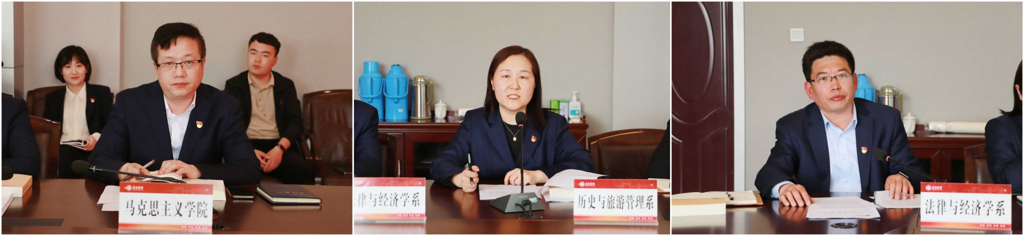 会上,马克思主义学院(筹)党委副书记刘隆、历史与旅游管理系党委书记张闻琦、法律与经济学系党委书记王志军分别结合学习体会和工作实际进行交流发言。
