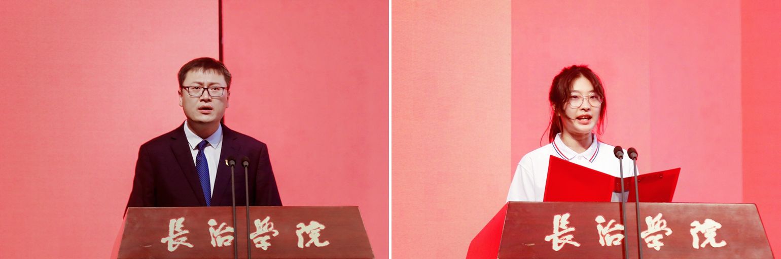 学生工作先进单位代表、外语系党委副书记张毅,优秀学生代表、物理系2021级学生刘靓在大会上作交流发言。