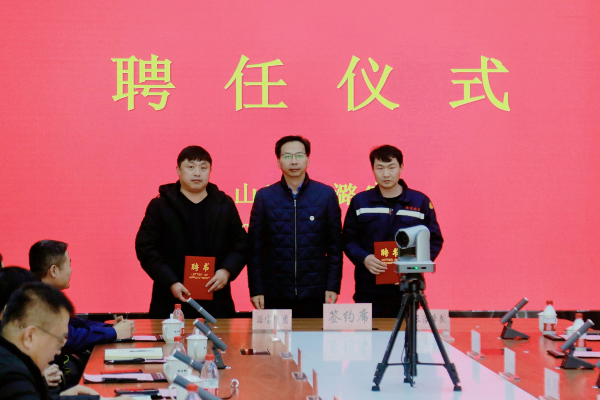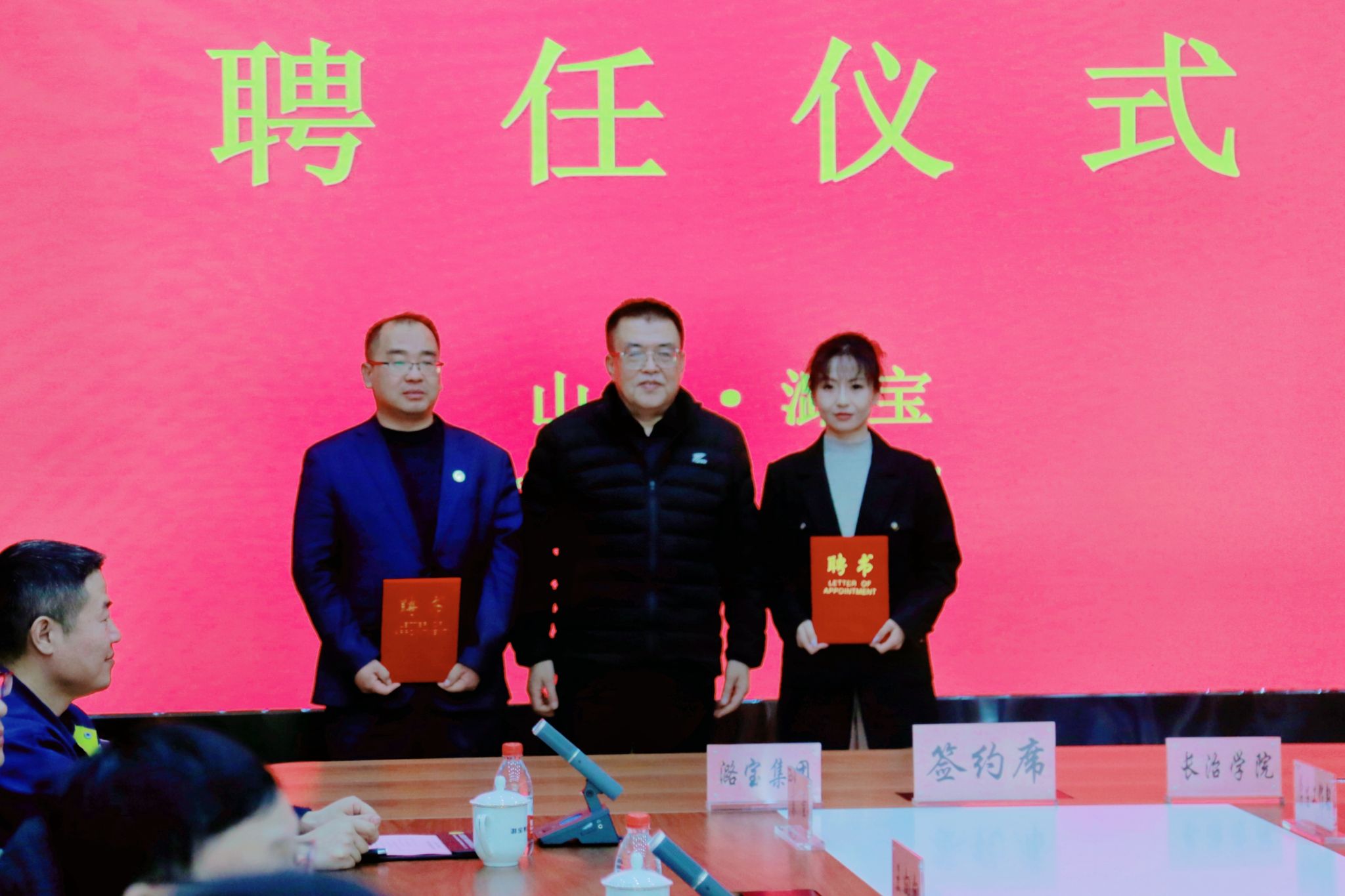 党委副书记史晓东向潞宝集团技术专家张庆伟、汪宁洋发放“企业指导教师”聘书。