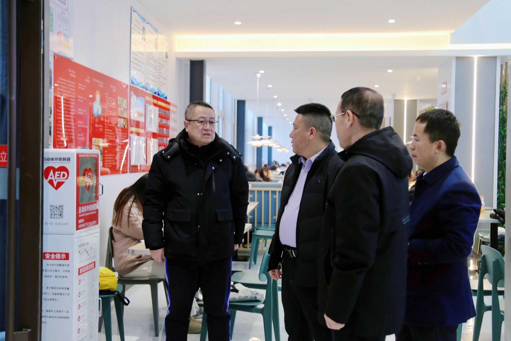 听取汇报后,考评组查阅了相关工作资料,实地查看了学校餐厅、宿舍、智慧安防指挥中心等,并与师生代表进行了座谈。
