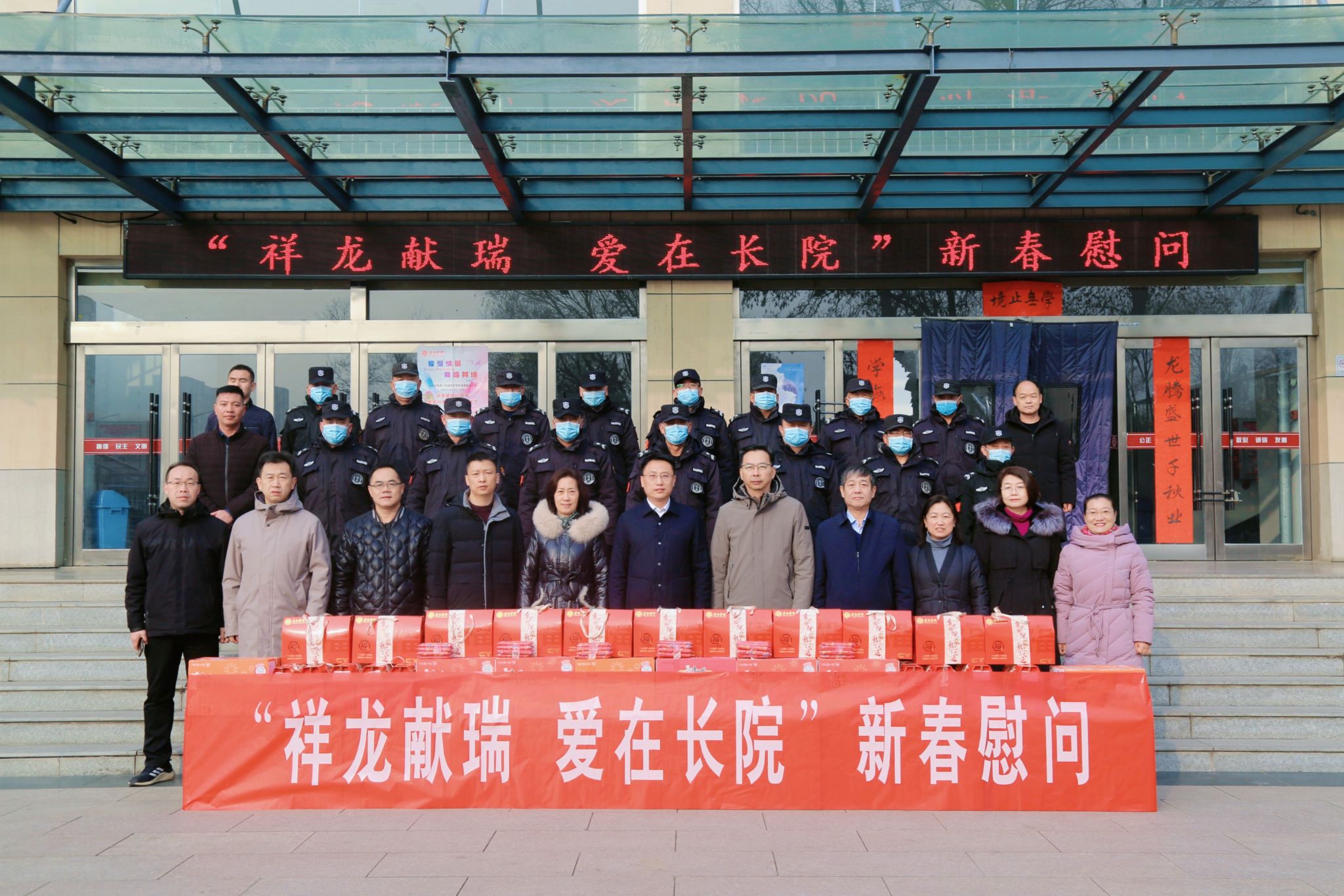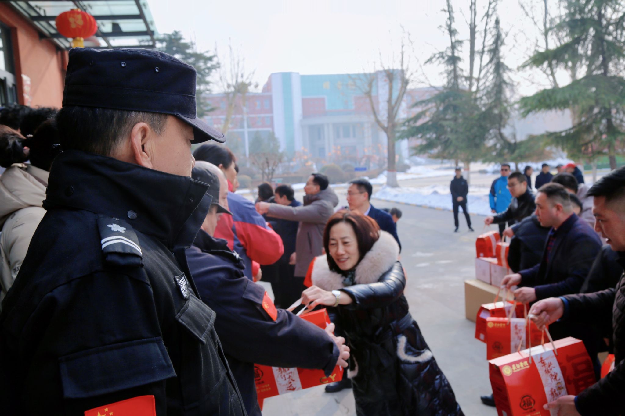 又是一年佳节至,迎春送福暖人心。在新春佳节来临之际,校园内彩灯高挂、缤纷绚丽,处处洋溢着喜迎新春的节日气氛。2月7日上午,校领导曹景川、史晓东、焦雨、武月明来到南北两校区和太行中学,看望慰问春节期间坚守岗位的一线干部职工,为他们送上印有“幸福长院”字样的慰问品,向他们致以节日问候与诚挚祝福。党委办公室、校长办公室、纪检监察办公室、党委宣传部、人力资源部、后勤部、保卫部、工会等部门负责人和相关同志参加活动。