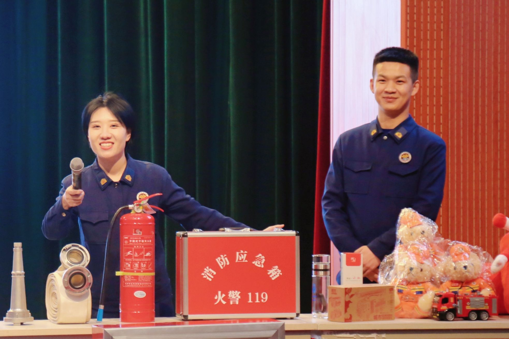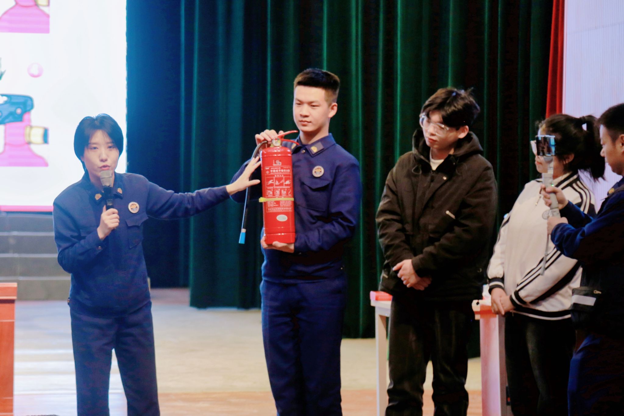 范战伟结合视频、图片资料,以实际案例向学生讲解了火灾发生时如何正确拨打火警电话、火场中如何正确逃生自救、日常生活中火灾的预防等内容。救援支队工作人员展示并讲解了多种消防灭火装备的适用范围及正确使用方法,并通过现场互动的形式,帮助学生进一步了解、掌握了灭火器的使用方法。
