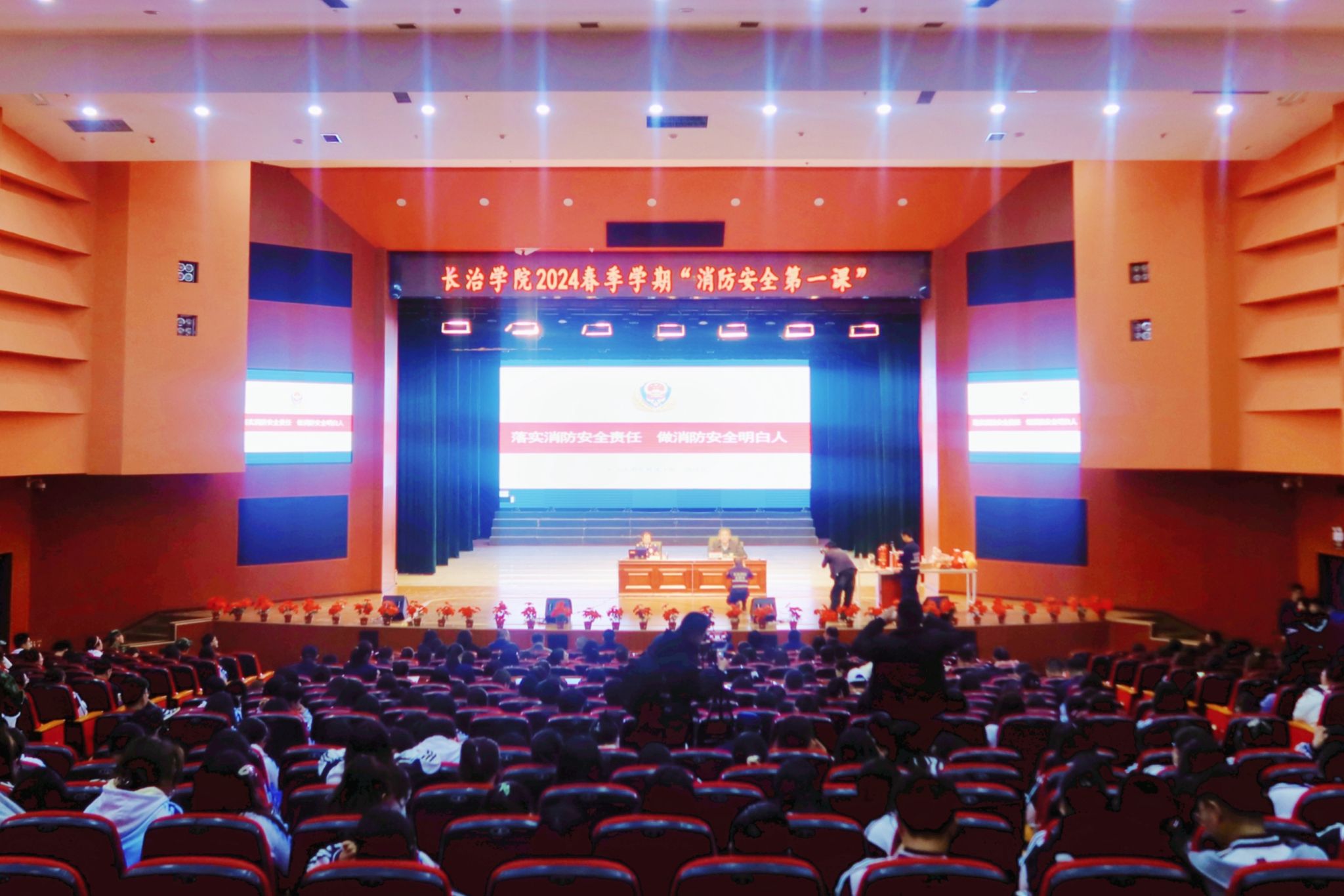 为进一步增强消防安全意识,普及消防安全和应急救护知识,3月19日下午,新葡的京集团在实验剧场举办消防安全知识讲座并开展消防逃生疏散灭火演练活动。校党委委员、副校长武月明,长治市救援支队副支队长范战伟出席活动。长治市救援支队,新葡的京集团学生工作部、保卫部,各系部党委副书记、全体专兼职辅导员和学生代表参加。