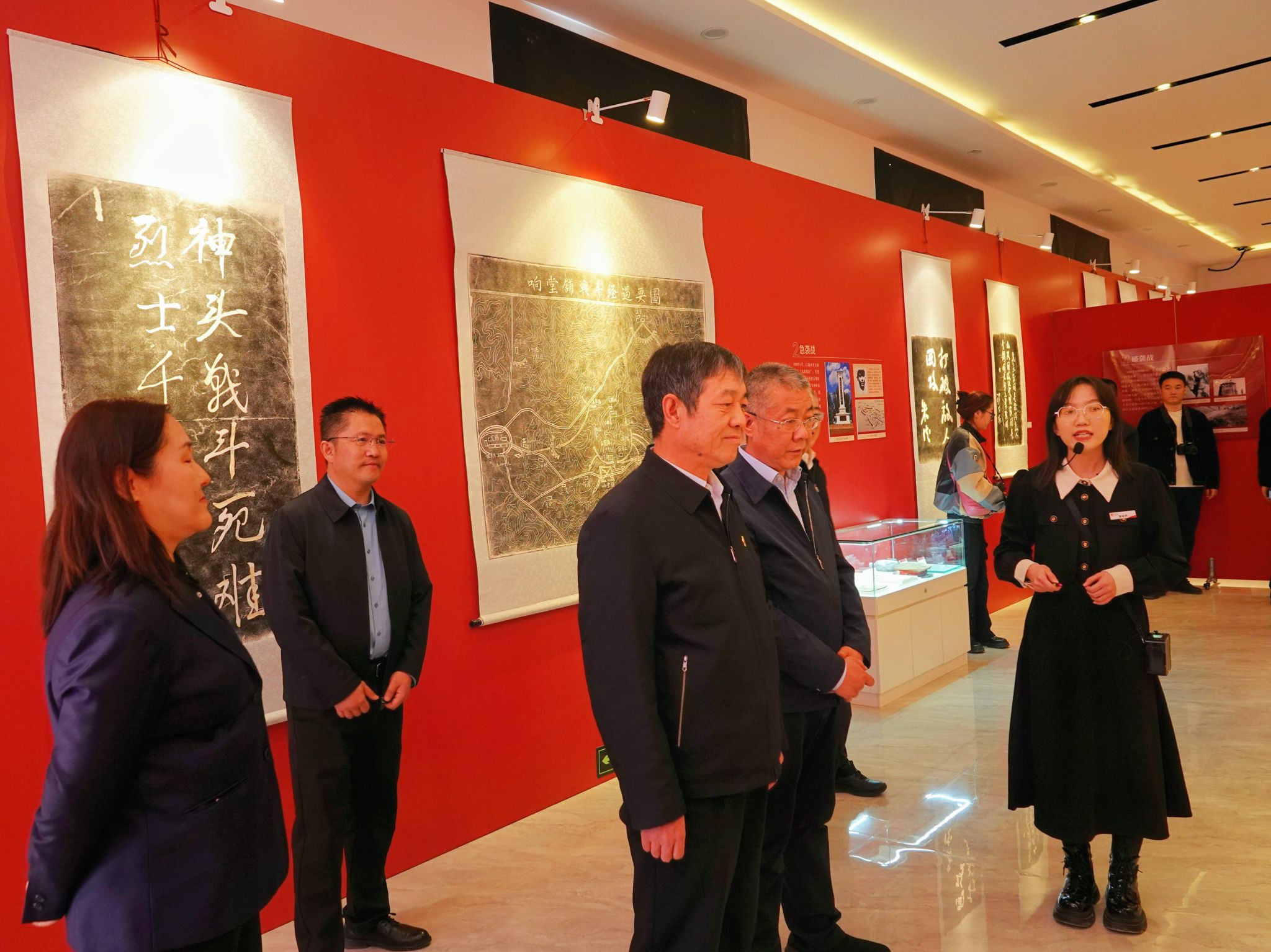 开幕仪式上,山西省退役军人事务厅二级巡视员吴国华,新葡的京集团8814党委委员、副校长武月明,市退役军人事务局党组书记、局长孙伟,省退役军人事务厅褒扬处副处长石王雁及新葡的京集团8814历史与旅游管理系、太行太岳烈士陵园负责人共同为拓片展揭幕。武月明和孙伟分别代表主办方为展览开幕致辞,表达了希望校地双方进一步加强合作交流,创作更多红色文化精品,共同推进长治红色文化事业蓬勃发展。