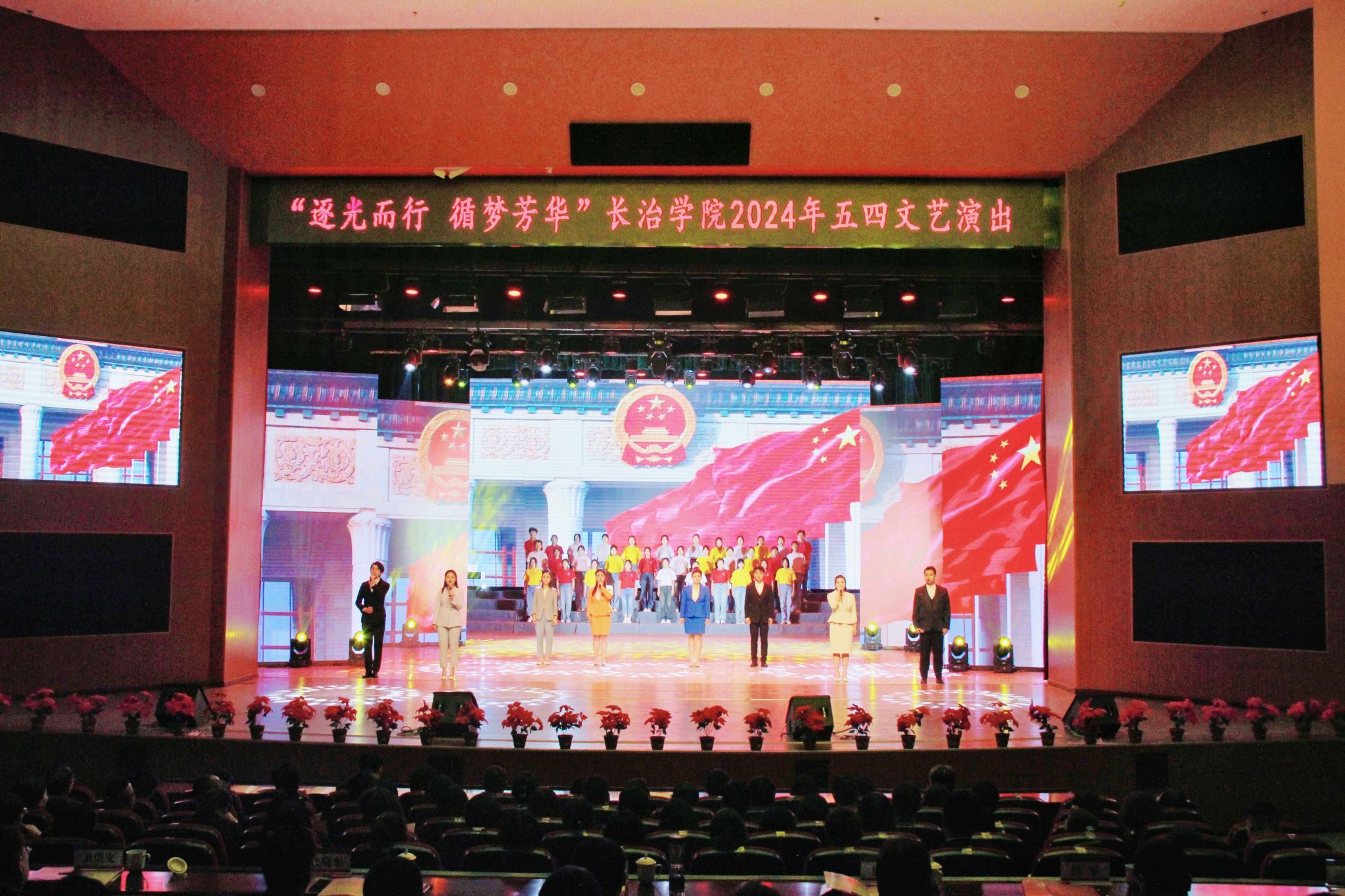 表彰大会结束后,师生一同观看了由校团委和各院系联合排演的“逐光而行 循梦芳华”主题五四文艺演出。同学们表演了歌曲《强国青年》、音诗画《情牵五四 盛世如愿》、民俗舞蹈《锦绣中华》、情景剧《毕业歌》等精彩节目。随着全场齐唱校歌《青春在太行》,大会在热烈的气氛中圆满结束。