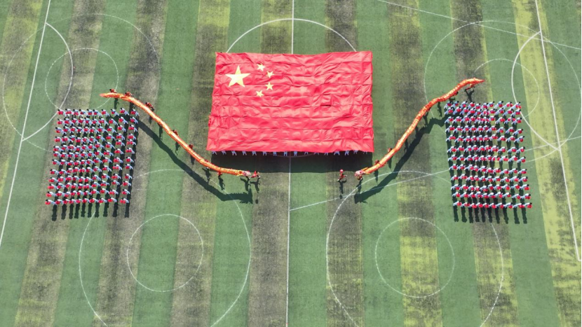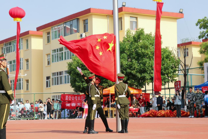 入场仪式完毕,举行升旗仪式。伴随着庄严的国歌,五星红旗在全体师生的注视下冉冉升起。