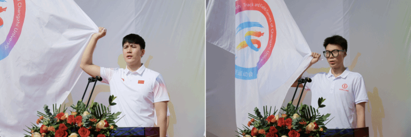 开幕式上,裁判员代表刘吉祥、运动员代表思政2202班郝宽分别宣誓,遵守体育精神,遵守裁判纪律,团结协作,勇于拼搏。