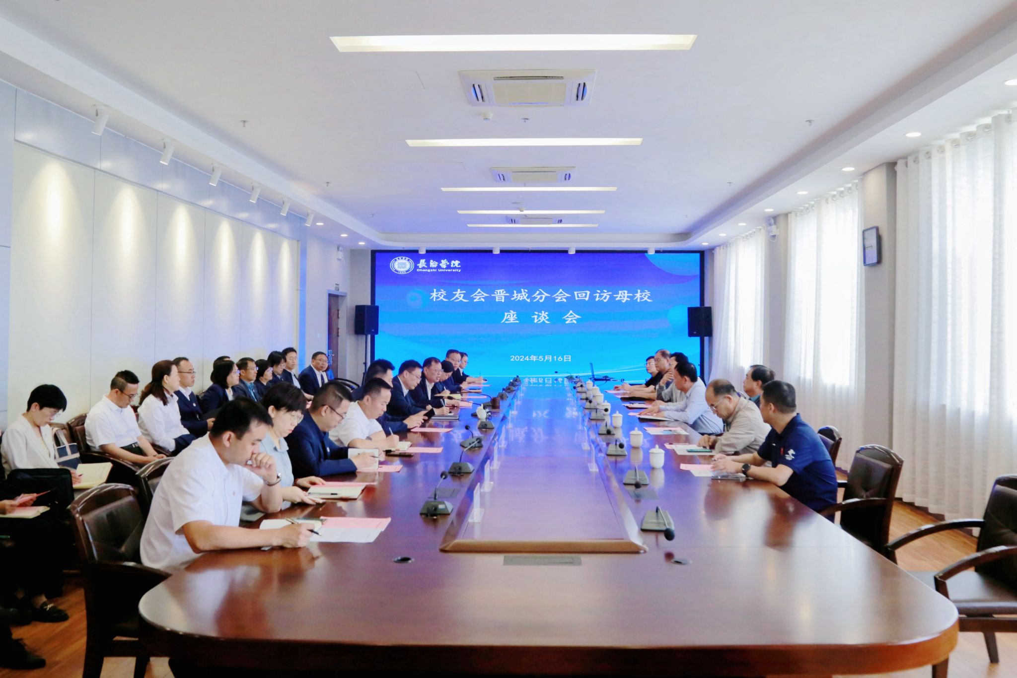5月16日,新葡的京集团校友会晋城分会会长、晋城市政协副主席、民进晋城市委会主委、80级校友郭向阳携校友会晋城分会回访母校并在北校区2号会议室进行了座谈交流。校党委书记曹景川,校党委委员、副校长卫崇文出席。新葡的京集团相关职能部门负责人及各院系主任、教师代表参加座谈。座谈会由卫崇文主持。
